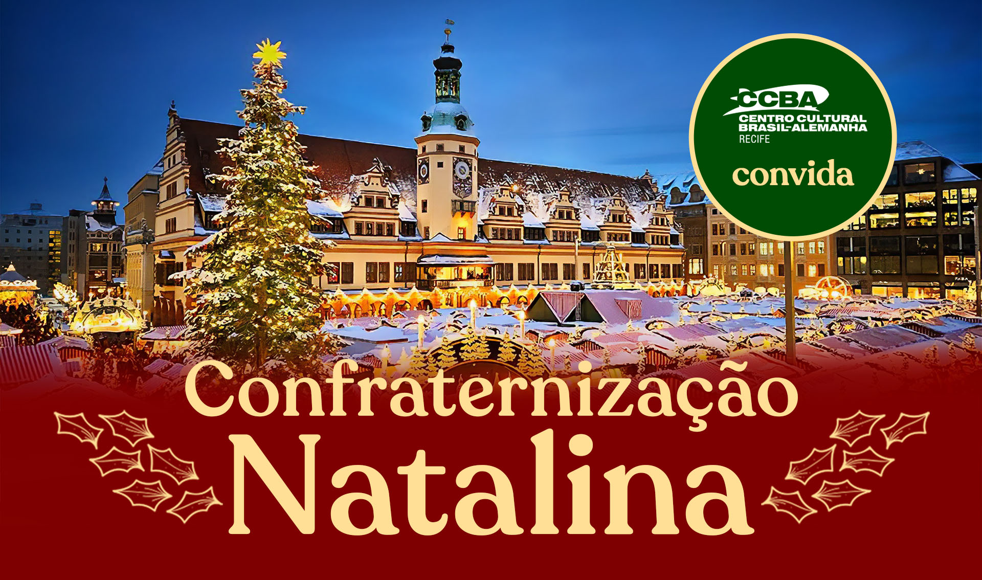 CCBA convida alunos/as, ex-alunos/as, parceiros/as e amigos/as para a sua e a nossa Confraternização Natalina 2025 quer será na 5ª feira, 11 de dezembro de 2025 de 19 as 22 horas no CCBA.